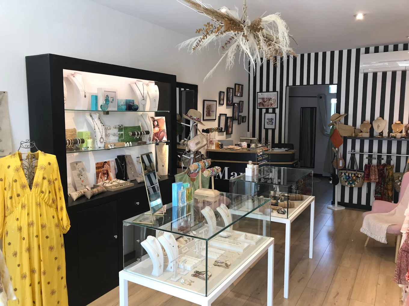 Marie K : Bonjour, bienvenue chez Marie K. Nous sommes installés à Coustellet et nous proposons une sélection raffinée de bijoux, d’ accessoires de mode et de prêt à porter. Toutes nos collections sont disponibles à la boutique ou directement en ligne depuis notre site internet.