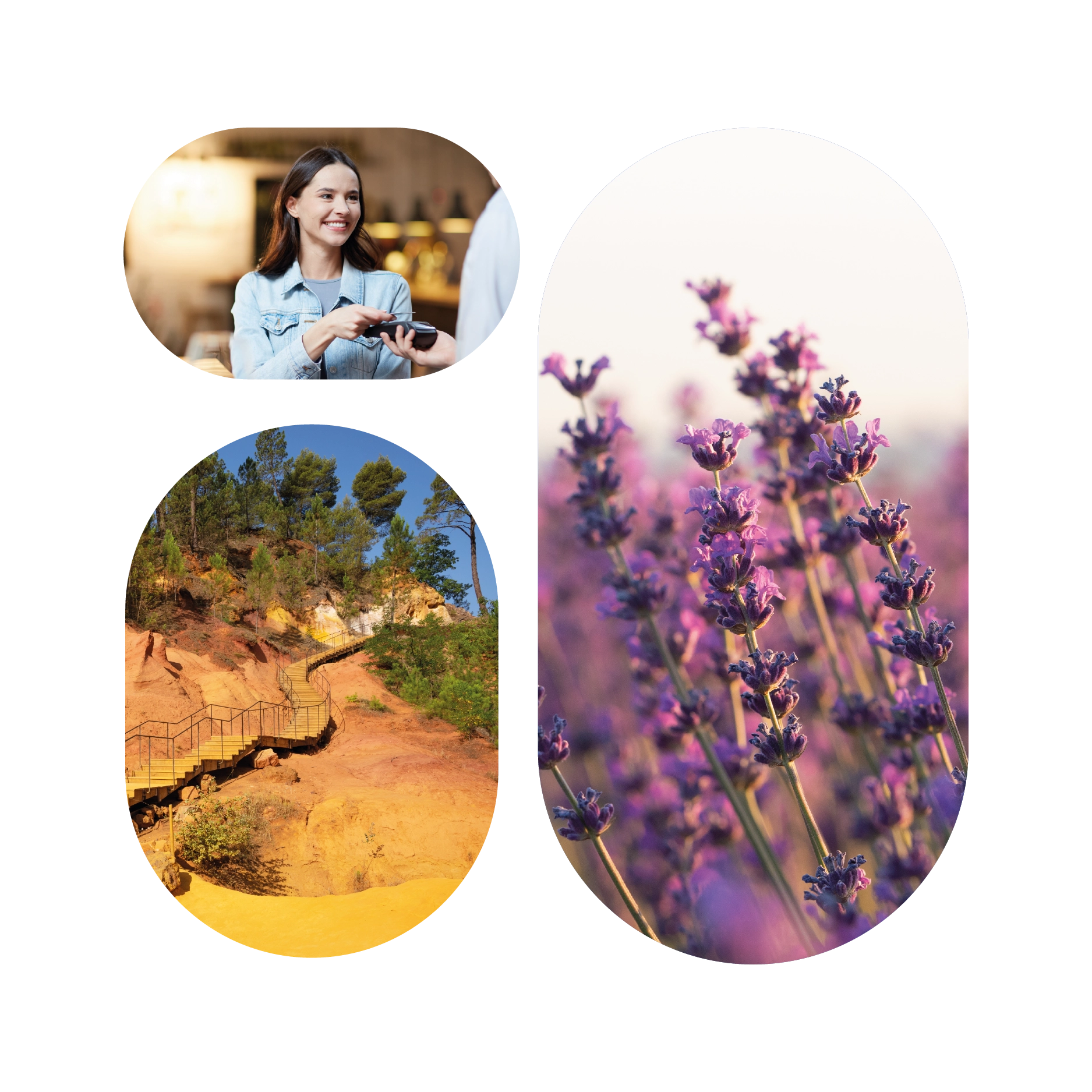 Avignon et son Palais des Papes, Carpentras et ses marchés parfumés, les ocres de Roussillon, les lavandes de Sault, le géant Ventoux qui veille, la Sorgue à Fontaine-de-Vaucluse, les vignes de Châteauneuf-du-Pape, sans oublier Gordes, Lourmarin, Vaison-la-Romaine ou Bonnieux…
